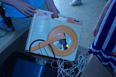 (yep, that's my old record player, it was in one of the boxes out of our storage unit. The kids found it, and this was their idea of what it is for. I guess I'm going to have to dig out the records and have a history lesson.)